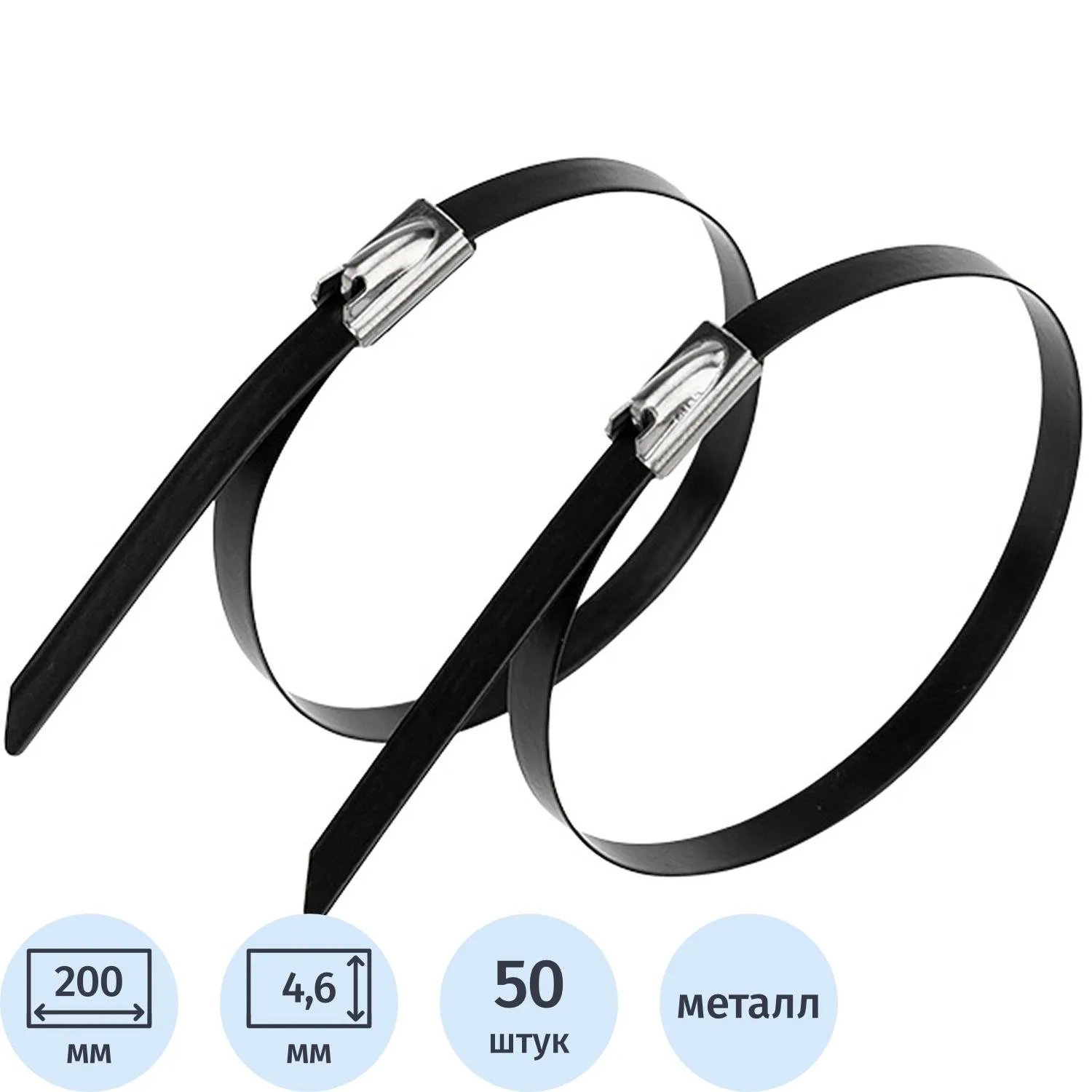 Хомут стяжка кабельная стальная 200x4,6мм REXANT (50 шт/уп) 07-0208