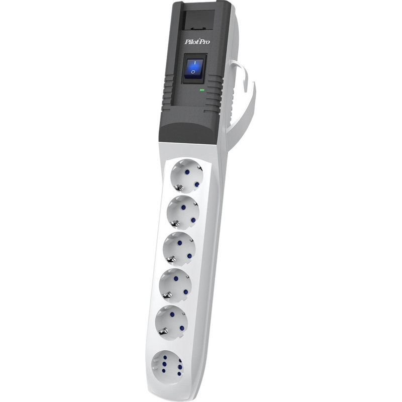 Сетевой фильтр PILOT PRO USB (6р/7м/10А/USB/серый) v23