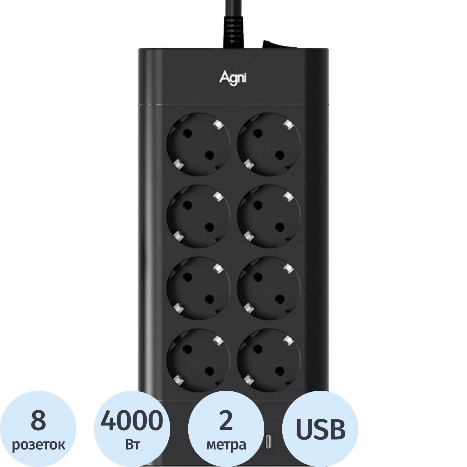 Сетевой фильтр AGNI 8р/5м,3USB,1TYPE-C 20W,черный(TP-FA4U8E-C-5m-black)
