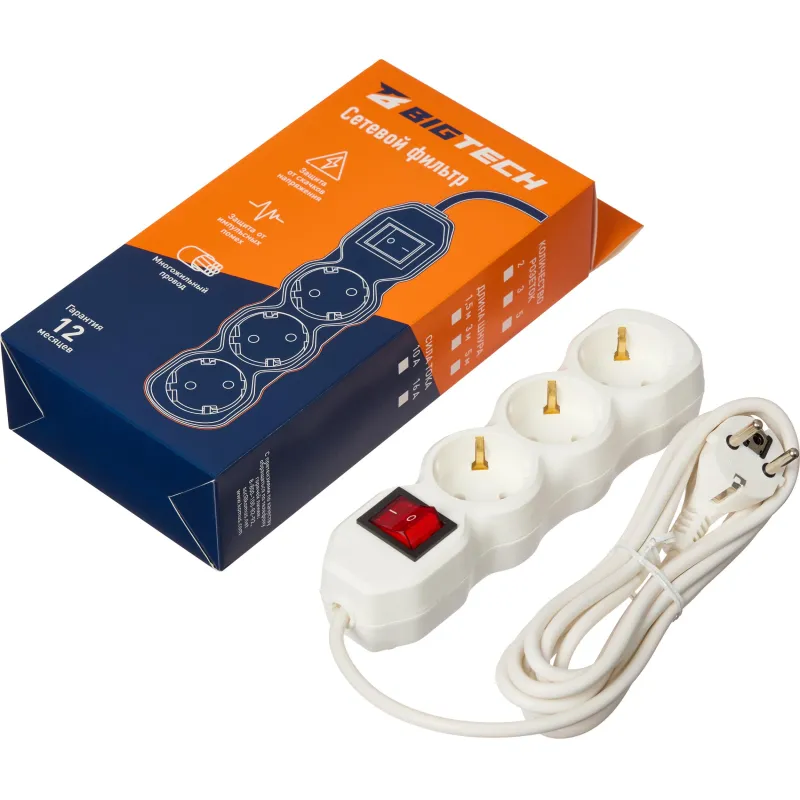 Сетевой фильтр BigTech CD3-1,4WU (3р/1,4м/USB-C/USB-A/16А/3680Вт белый)