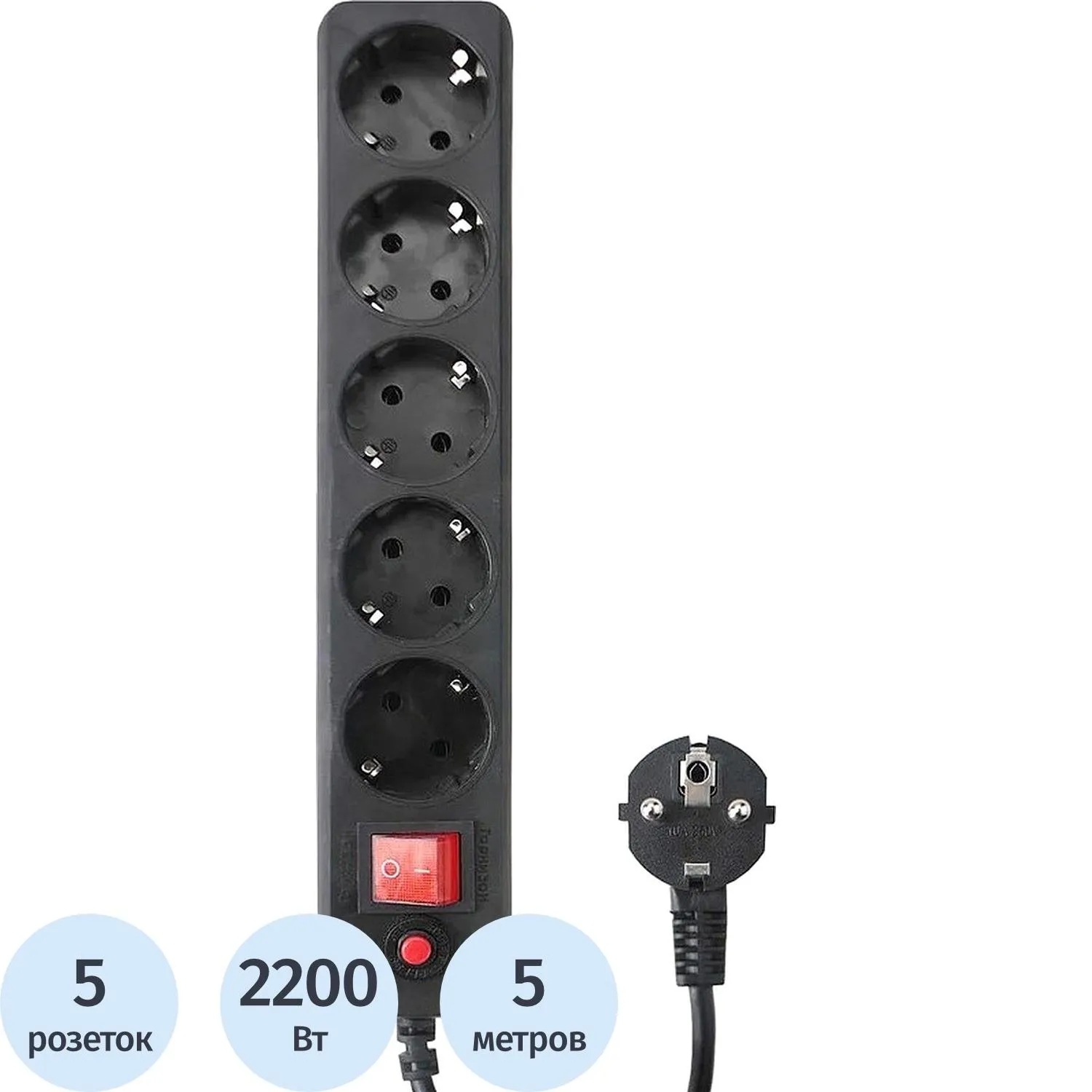 Сетевой фильтр Buro 600SH-5-B 5м (6 розеток) черный