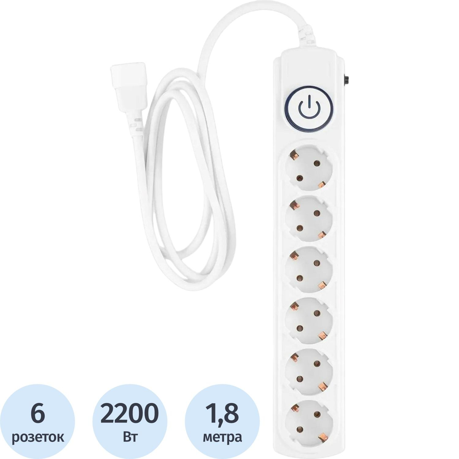 Сетевой фильтр Ippon BK-6-UPS-1.8-10-W 1.8м(6 розеток)белый(коробка)2200Вт