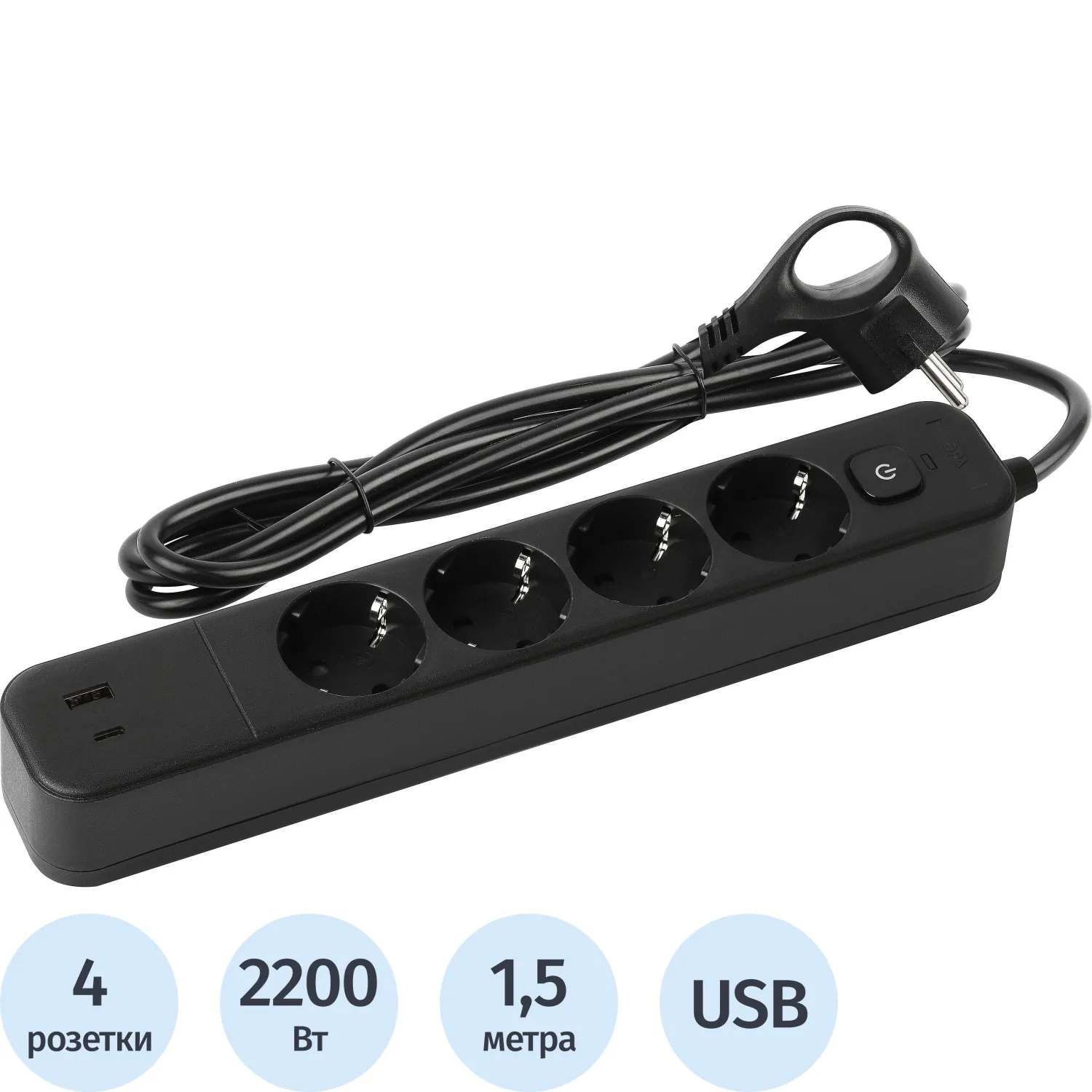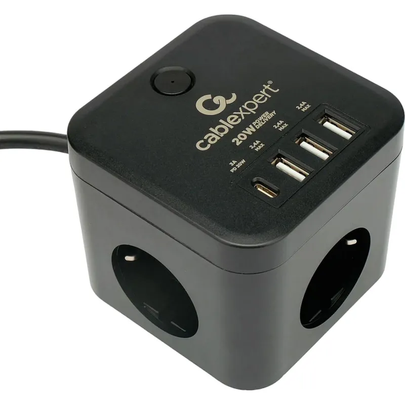 Сетевой фильтр Cablexpert Cube 3р/1,5м, 10А, 4хUSB, черный(CUBE-3-U4-B-1.5)