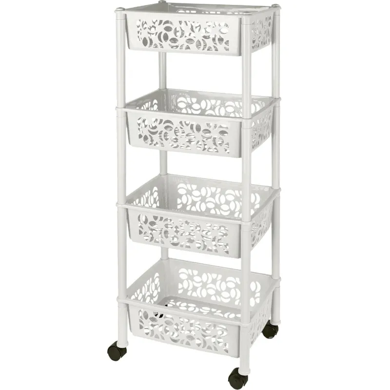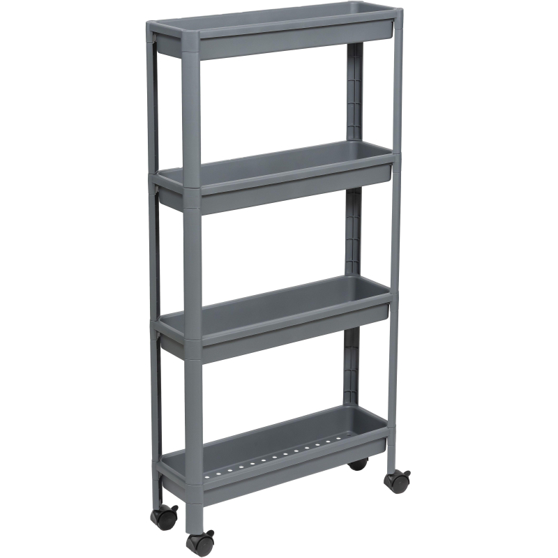 Этажерка М_VIKEA узкая 4-х ярусная на колесах, серый