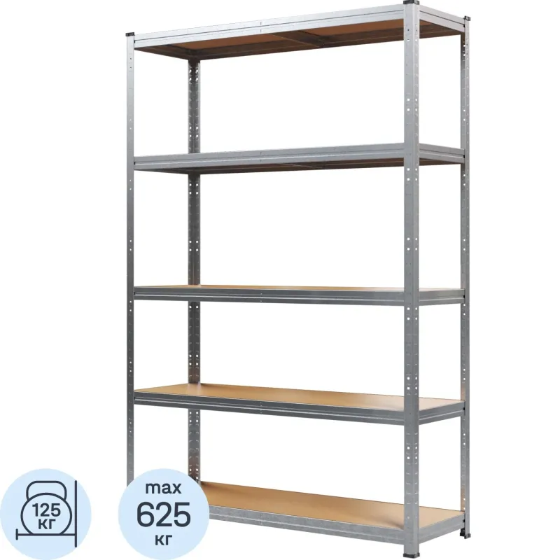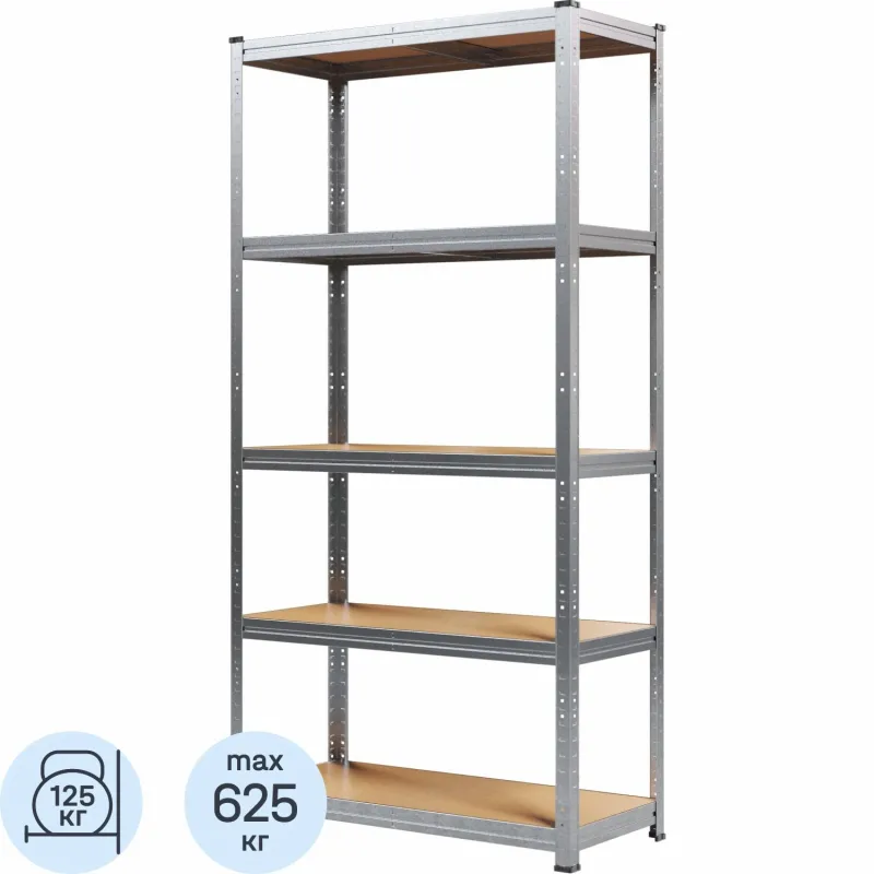 Стеллаж металлический MZ BONUS, 5 полок. цинк, ХДФ. 1800х750х350