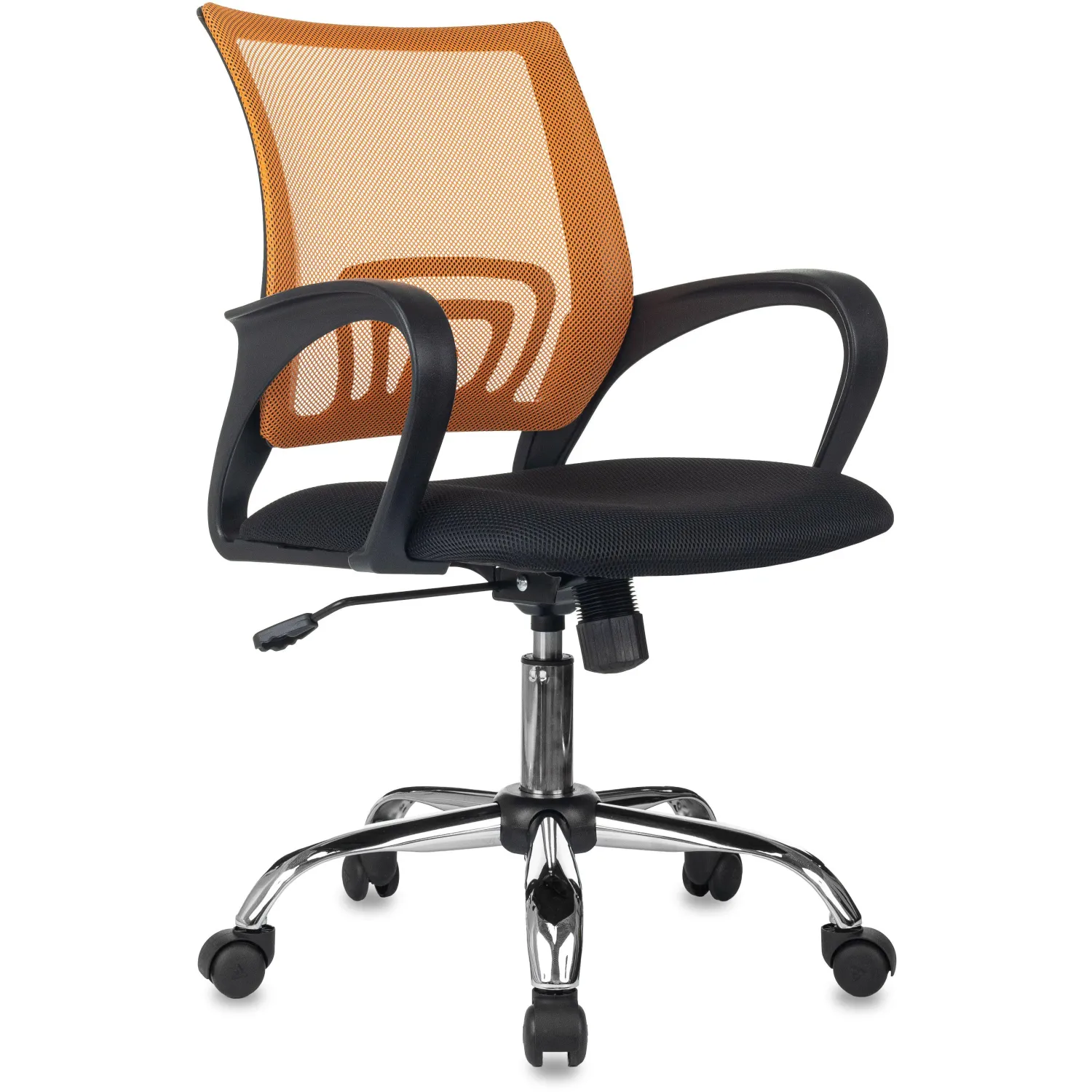Кресло БР Комус Мебель EChair-396 сетка/ткань,оранжевый/черный,хром