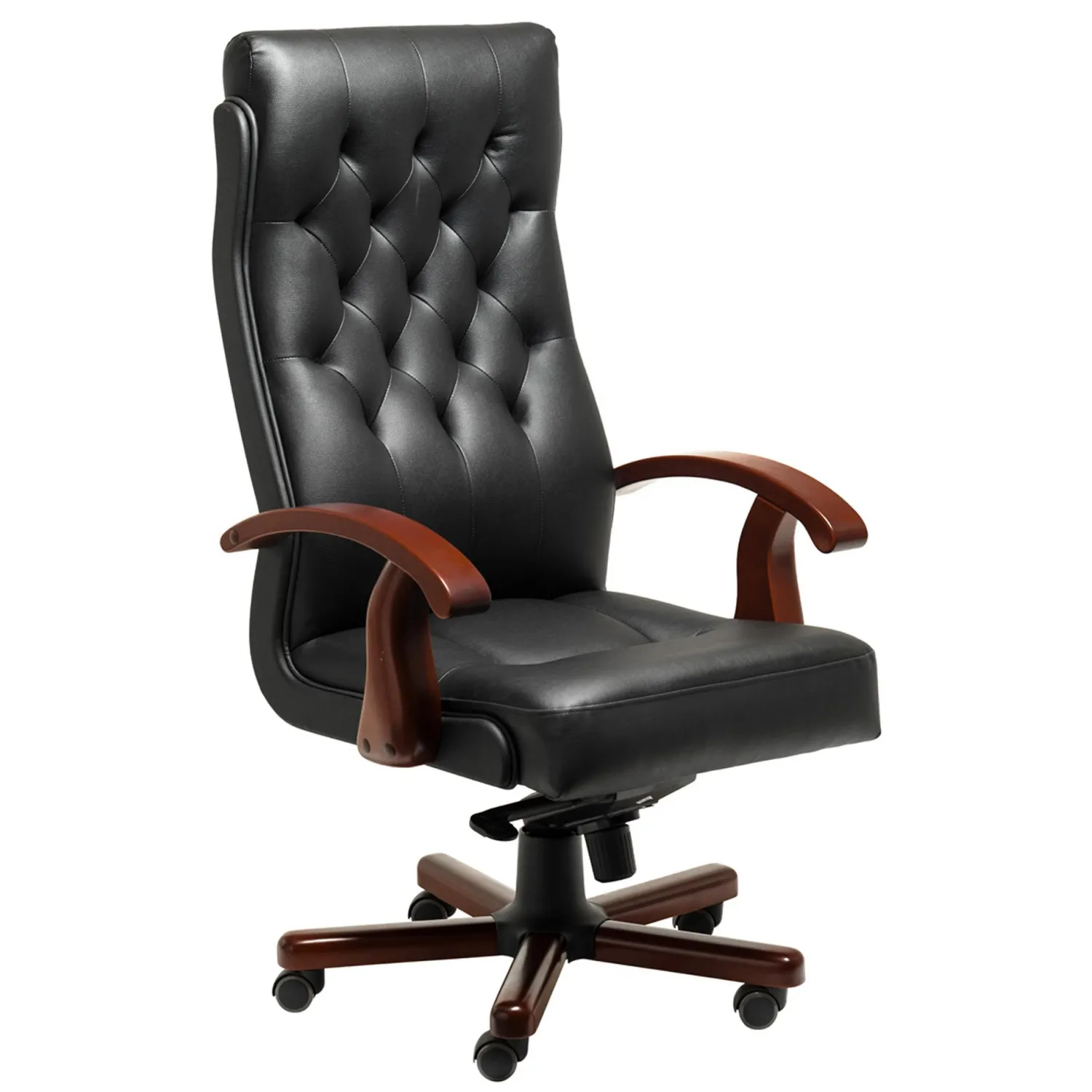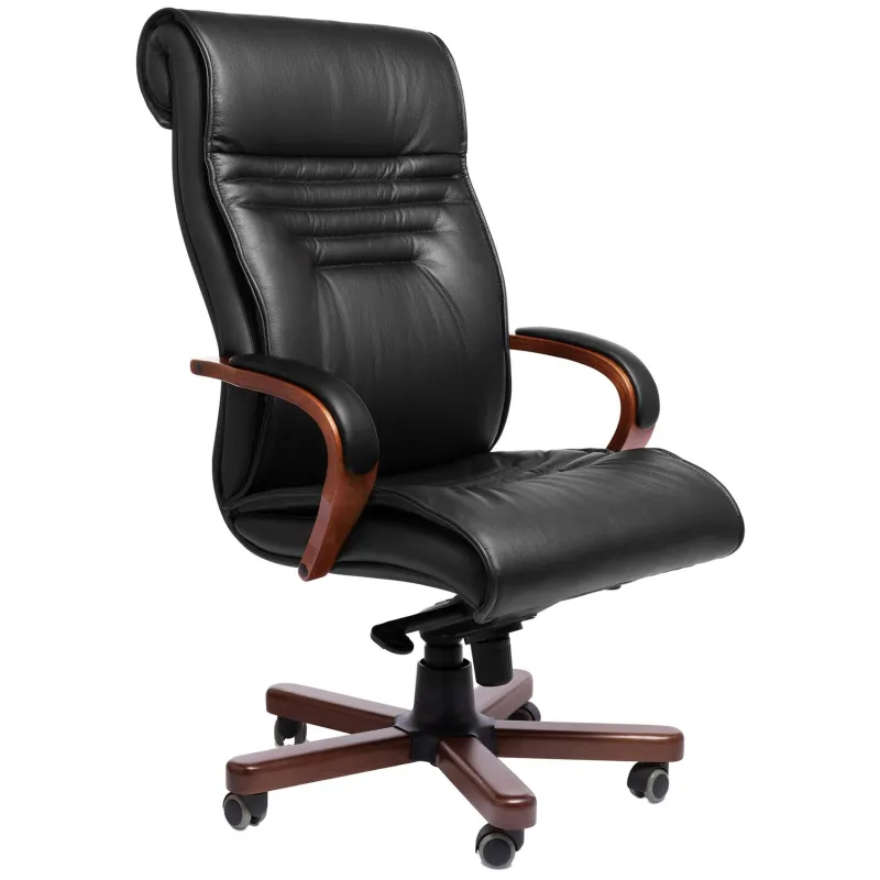 Кресло BASEL A с выс спинкой ч.кожа+к/з/т.орех