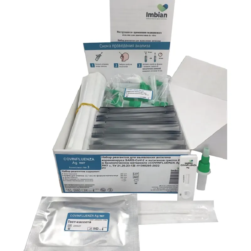 Тест Экспресс на антиген2в1,Covid-19+гриппА/В,Imbian,20шт/упKR-004,KR020/20