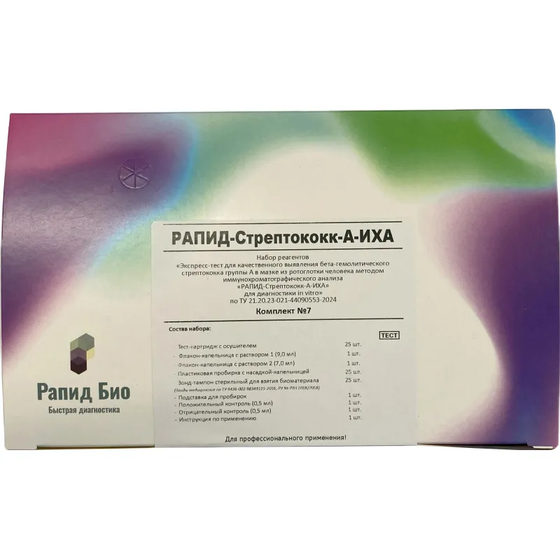 Тест экспресс на стрептококк группы А, Rapid Bio, 25 шт/уп
