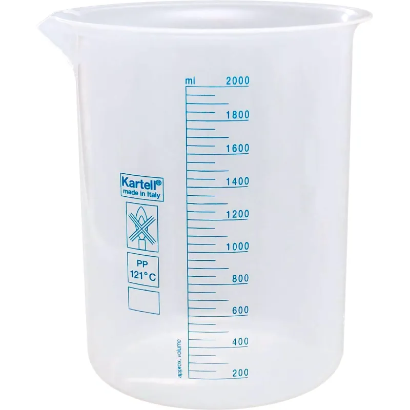 Мерный стакан 2000 мл ПП 4 шт/уп, автоклав. +121С, Kartell 11000822
