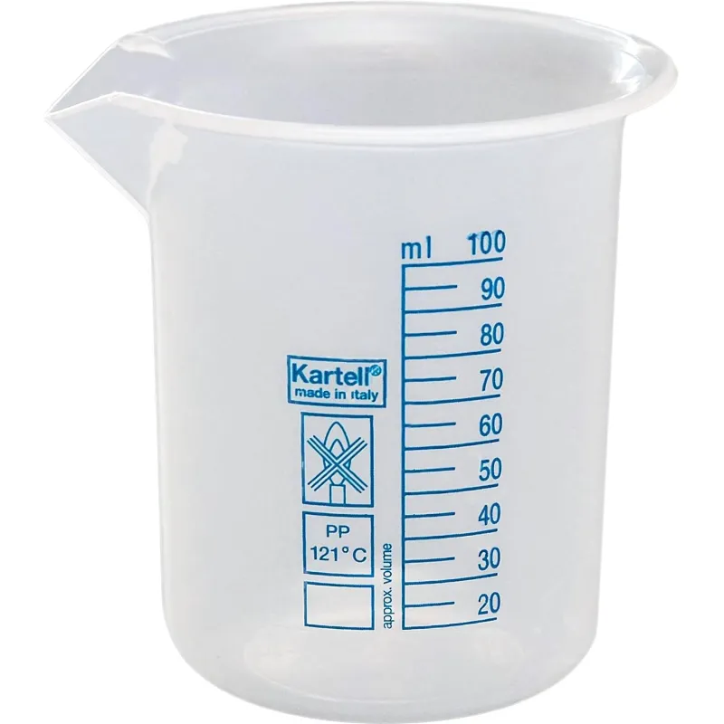 Мерный стакан 100 мл ПП 12 шт/уп, автоклав. +121С, Kartell 11000820