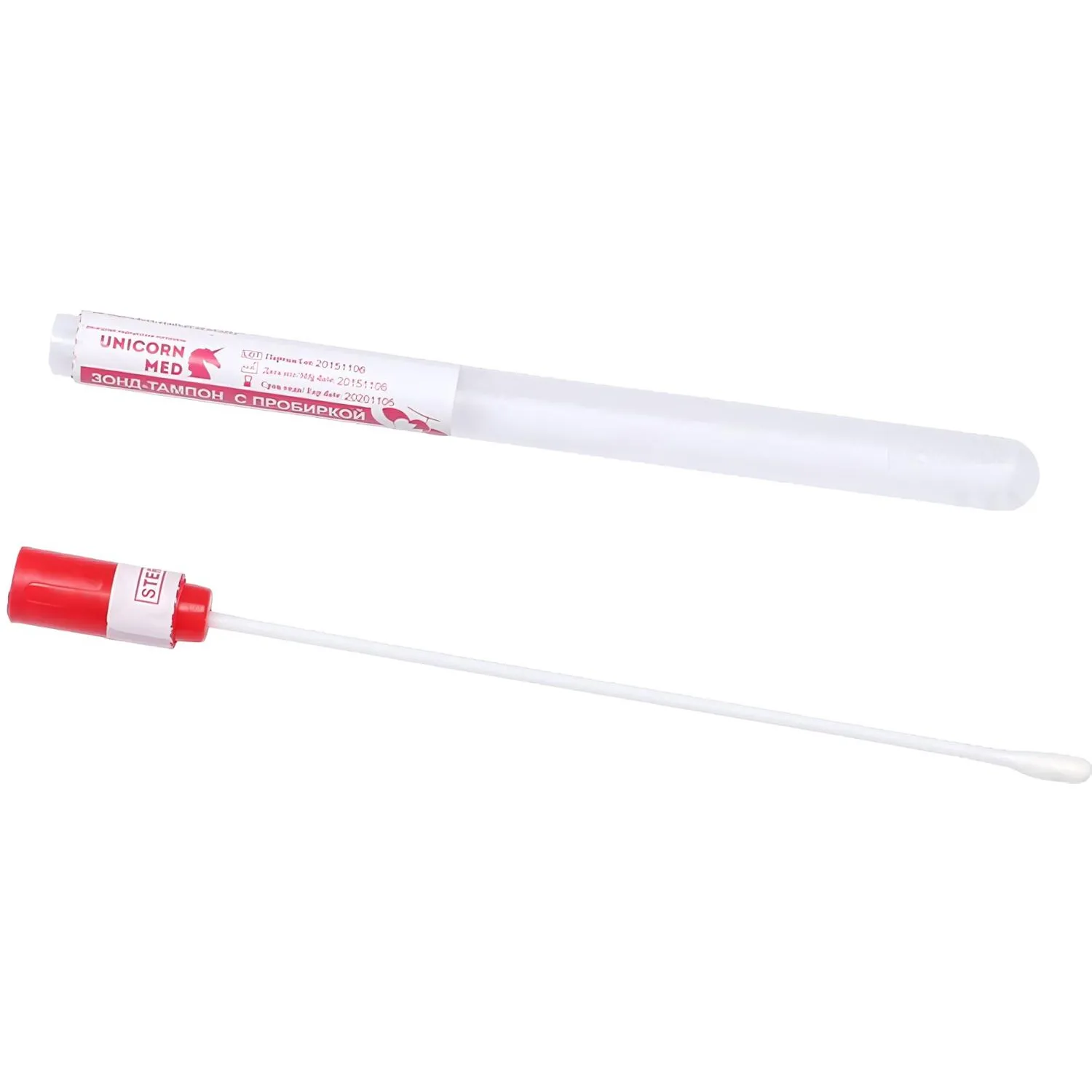 Зонд тампон(тупфер) в пробирке б/среды стер.пласт/вис Unicornmed 100шт/уп