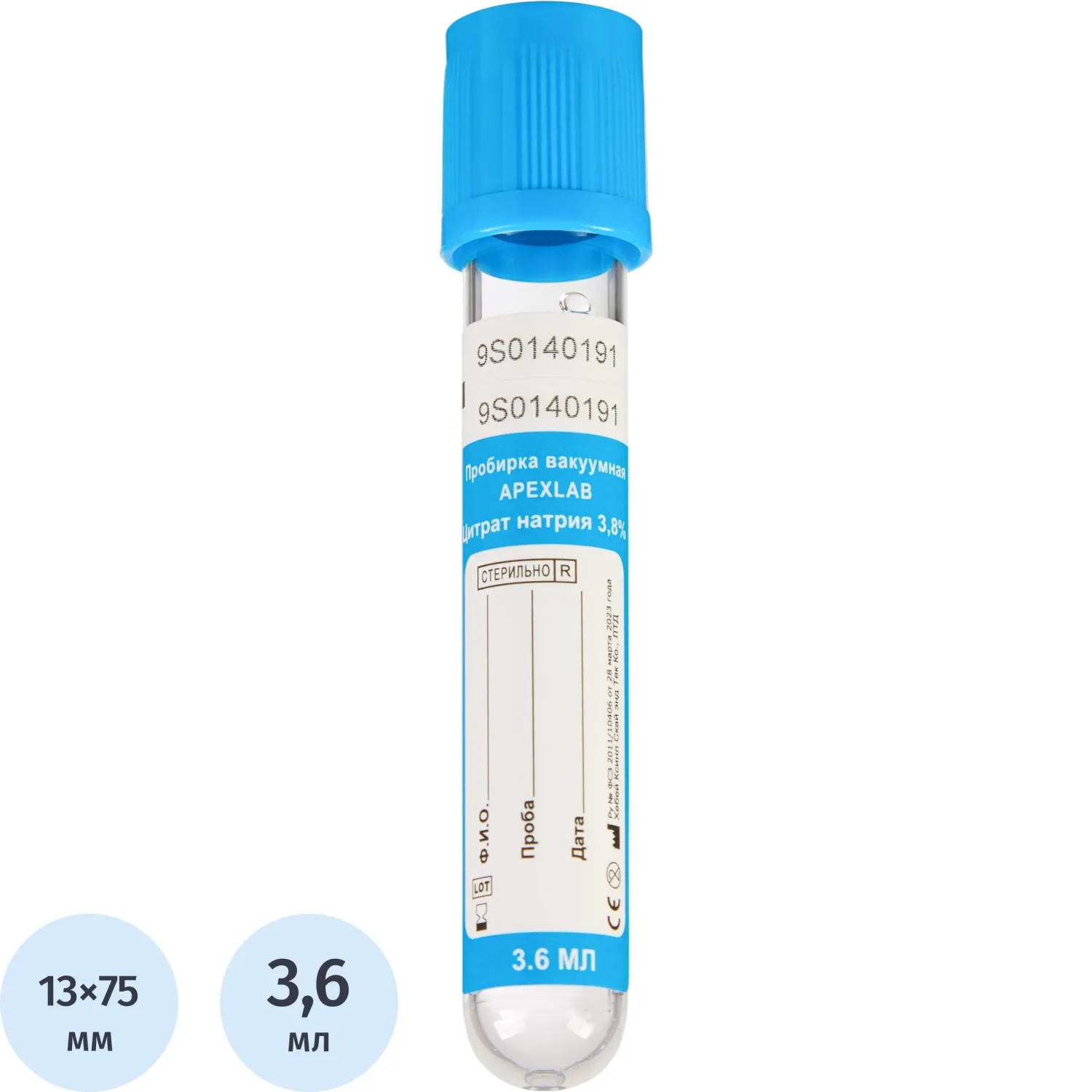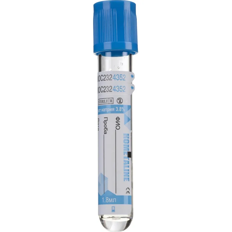 Вакуумные пробирки с Na цитрат 3,8% 1,8мл, 13х75мм, KOMETALINE 100шт/уп