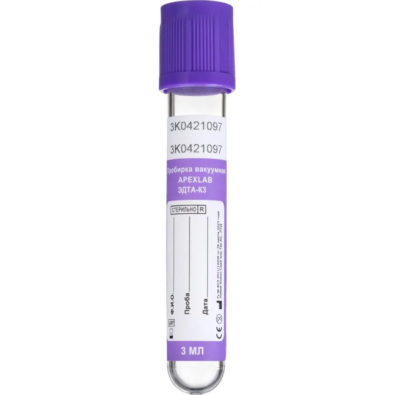 Вакуумные пробирки с ЭДТА-К3 6 мл, 13х100 мм, APEXLAB 100 шт/уп