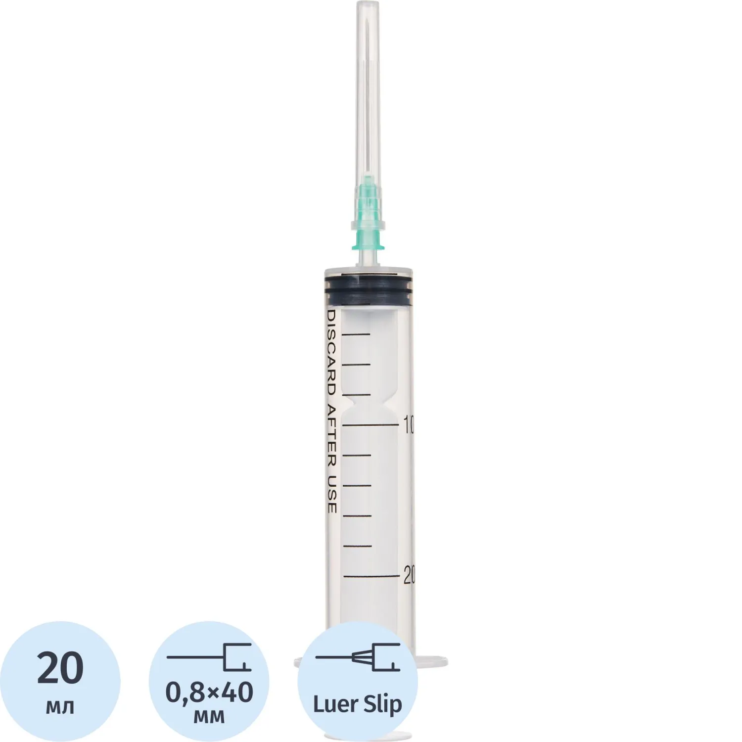 Шприц 3-комп. однораз. 20мл LS 21G(0,8x40) над. 40шт/уп Джинлонг