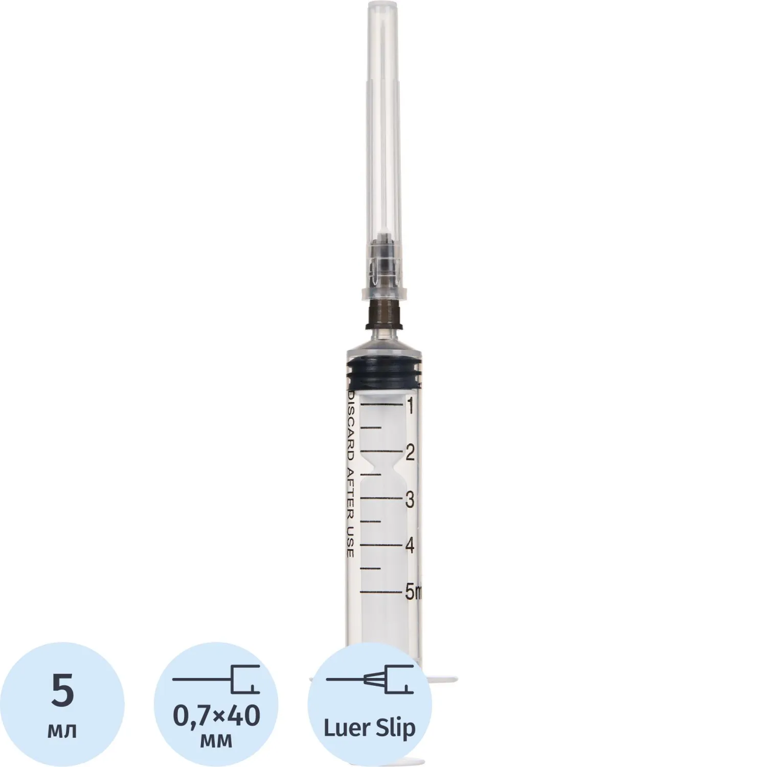 Шприц 3-комп. однораз. 5мл LL 22G(0,7x40) над. 100шт/уп Джинлонг