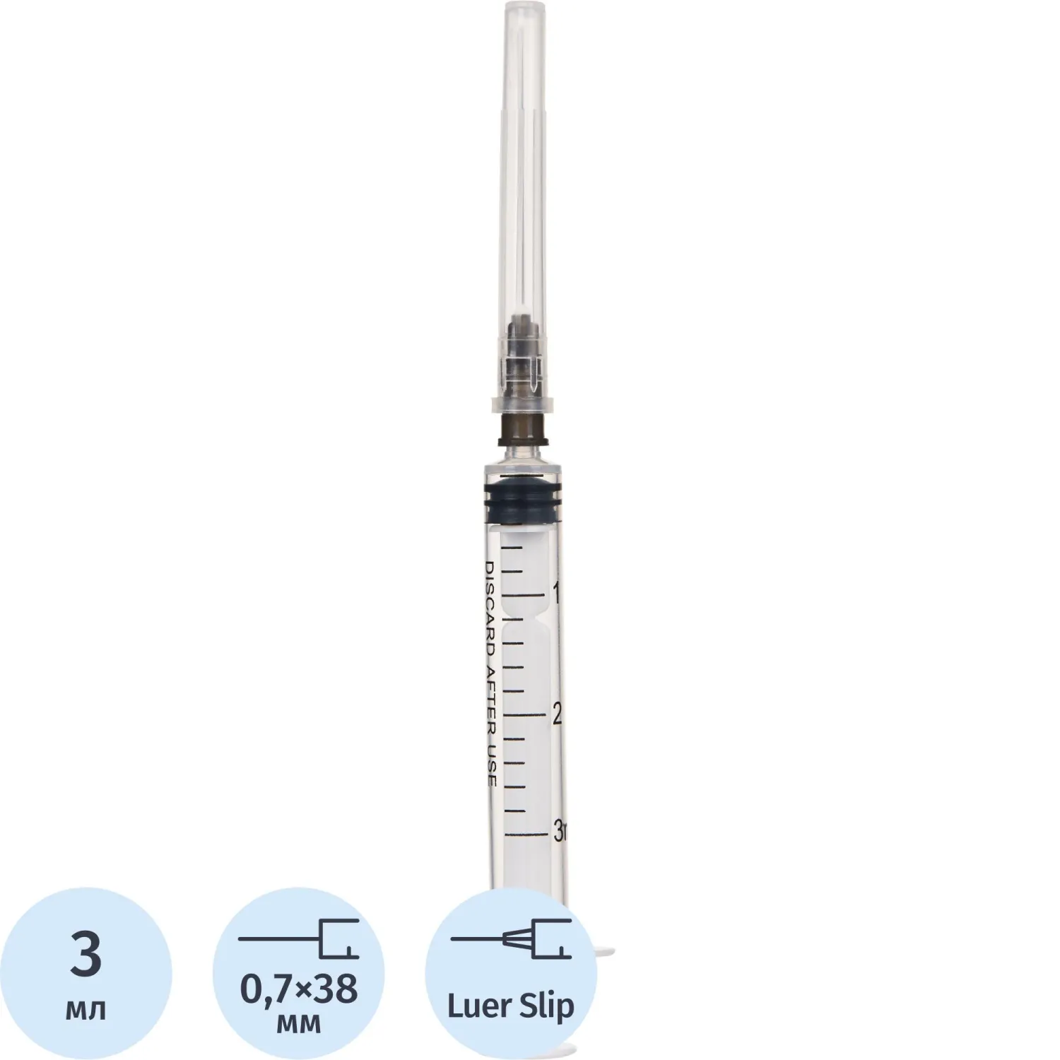 Шприц 3-комп. однораз. 3мл LS 22G(0,7x38) над. 100шт/уп Джинлонг