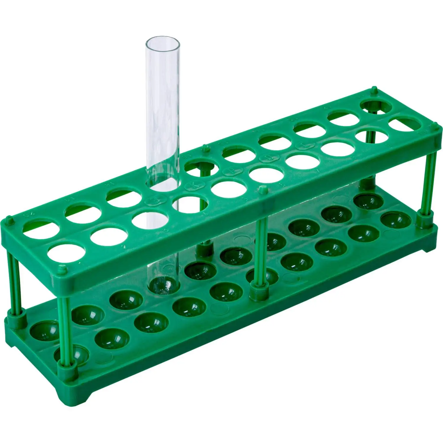 Штатив для пробирок (20 гнезд, h=75 мм) ЗЕЛЕНЫЙ, 4.07.01.0250, ПП
