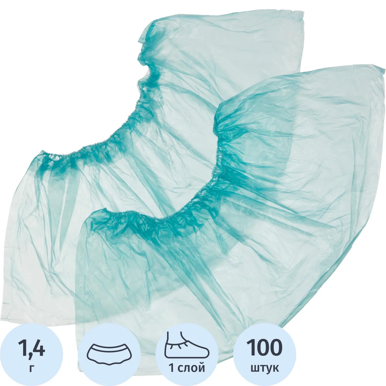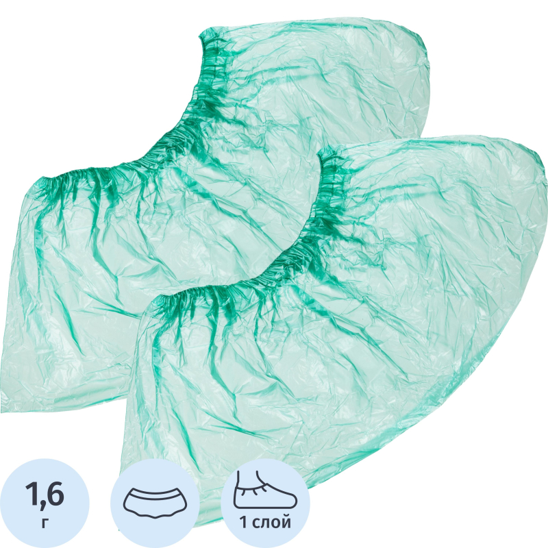 Бахилы детские н/с, п/э, Стандарт 1У, 1,6г, зеленый, 50 пар/уп