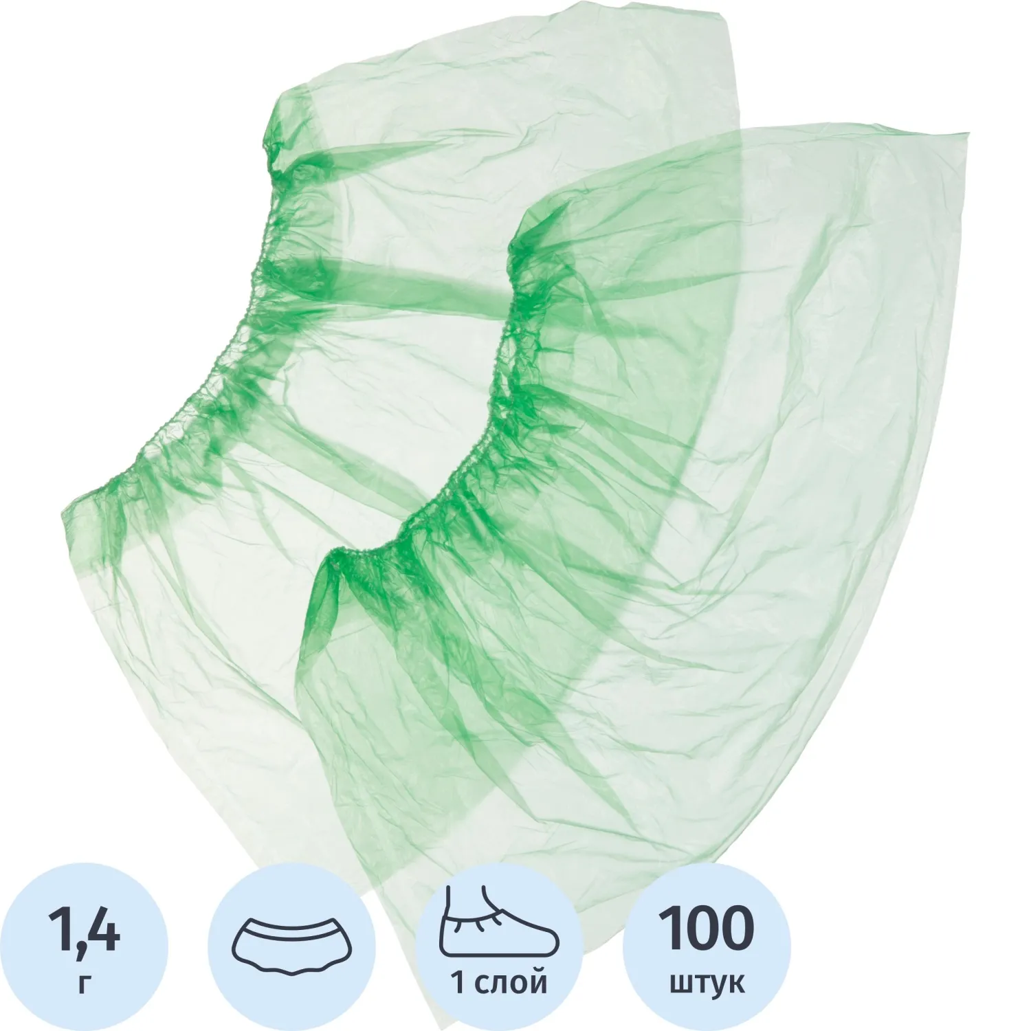 Бахилы детские 1,4 г, 1рез, зеленый, 7 мкм, Комус, 50пар/уп