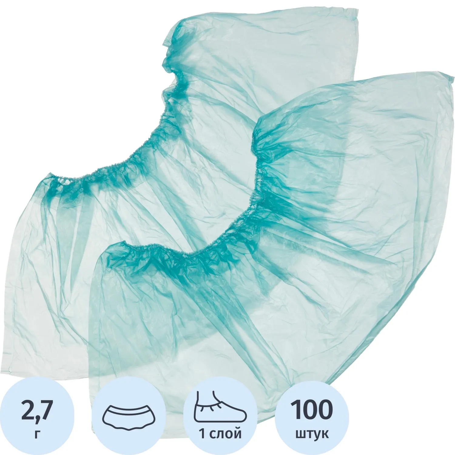 Бахилы 2,7 г, 1рез, бирюзовый, 10 мкм, Комус, 50пар/уп