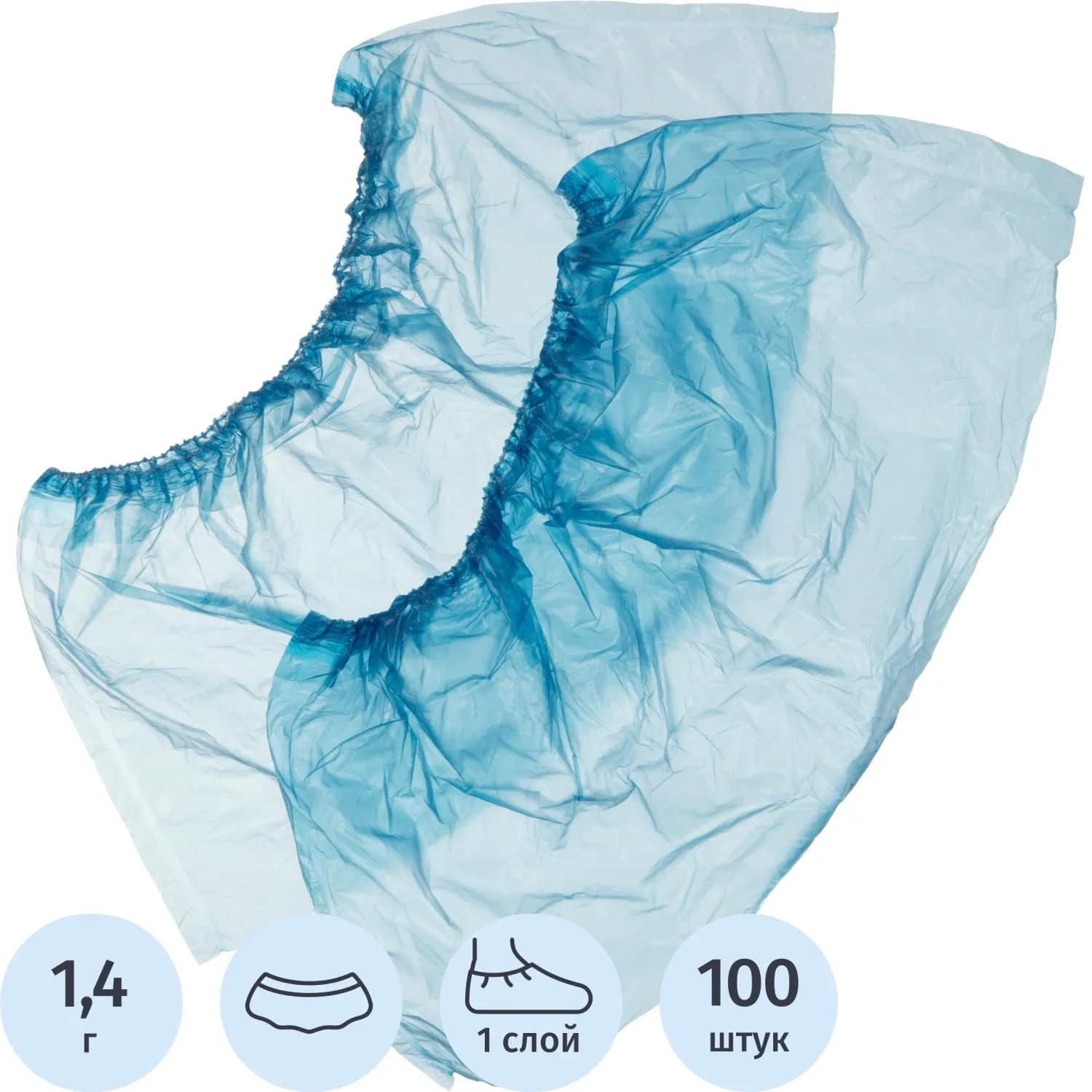 Бахилы детские 1,4 г, 1рез, синий, 7 мкм, Комус, 50пар/уп