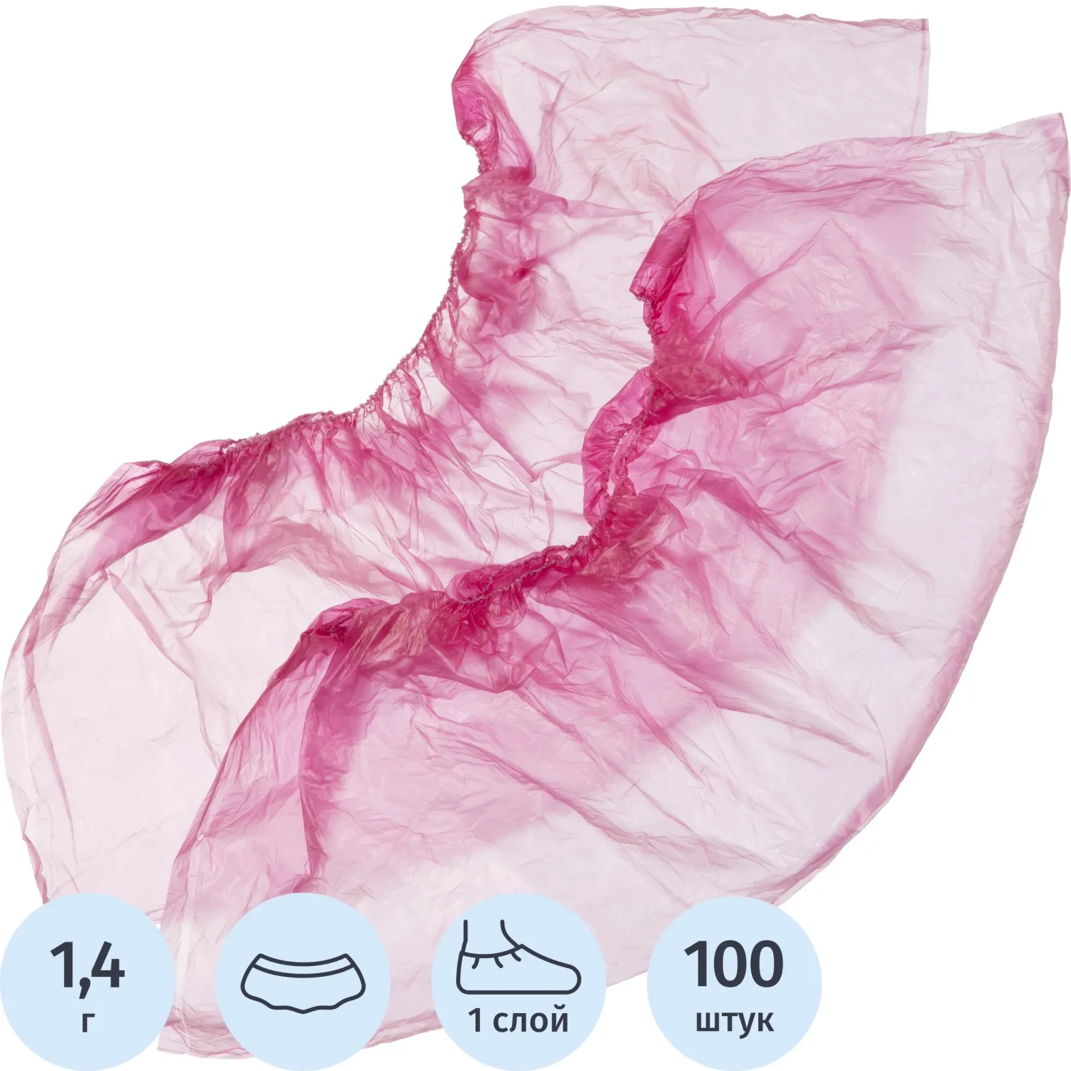 Бахилы детские 1,4 г, 1рез, розовый, 7 мкм, Комус, 50пар/уп