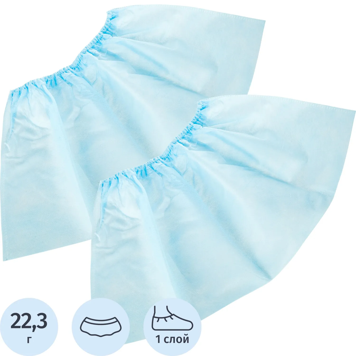 Бахилы 1,9 г, 1рез, синий, 7 мкм, Комус, 50пар/уп