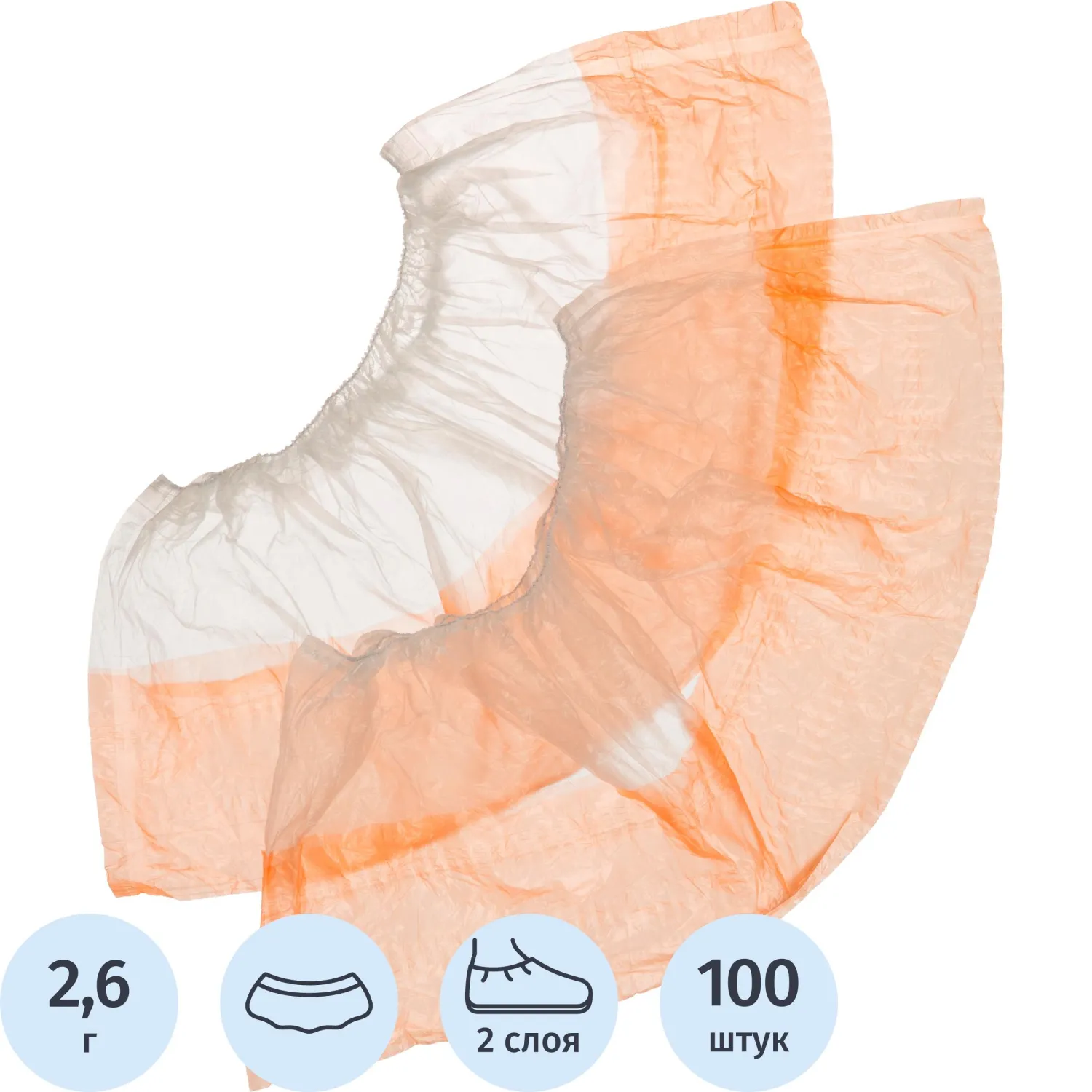 Бахилы 2,6 г, 1рез, 2-ая под, бело-оранжевый, 7+7 мкм, Комус, 50пар/уп