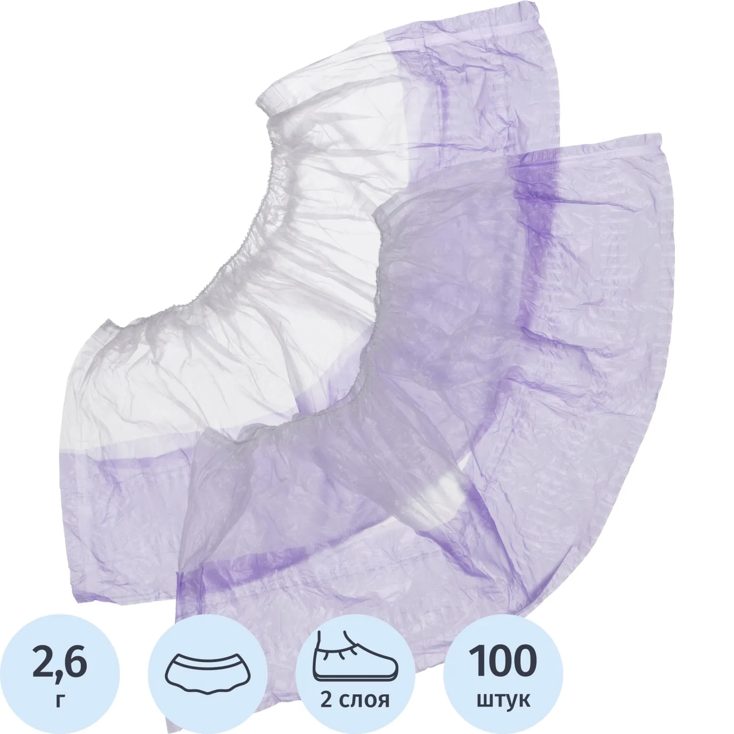 Бахилы 2,6 г, 1рез, 2-ая под, бело-фиолетовый, 7+7 мкм, Комус, 50пар/уп