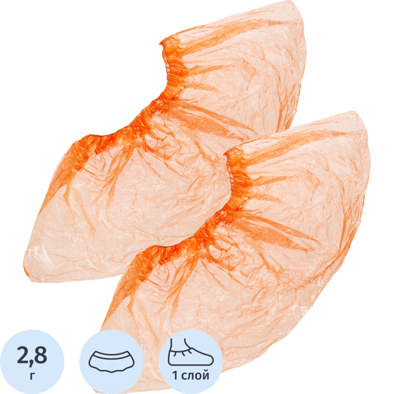 Бахилы н/с, п/э Стандарт 2,8г оранжевый 50 пар/уп