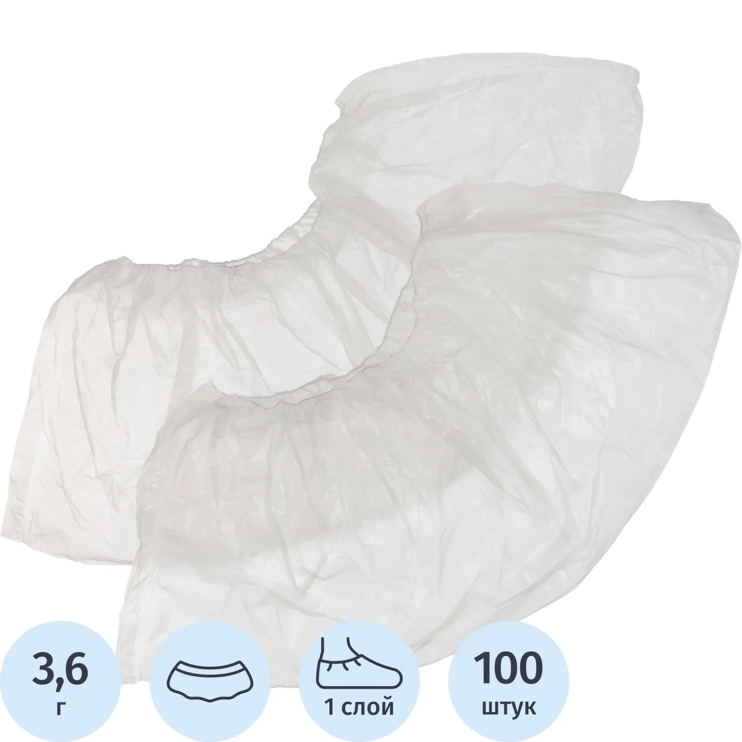 Бахилы 3,6 г, 1рез, белый, 13 мкм, Комус, 50пар/уп