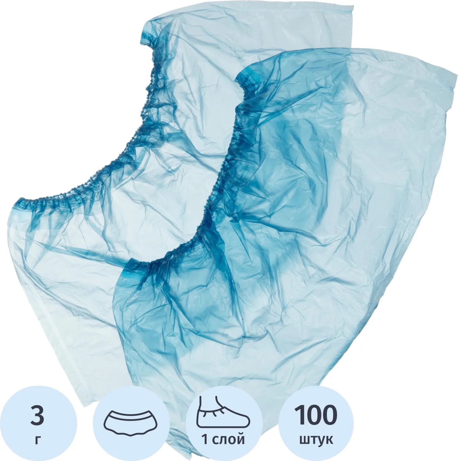 Бахилы 3,9 г, 1рез, синий, 15 мкм, Комус, 50пар/уп