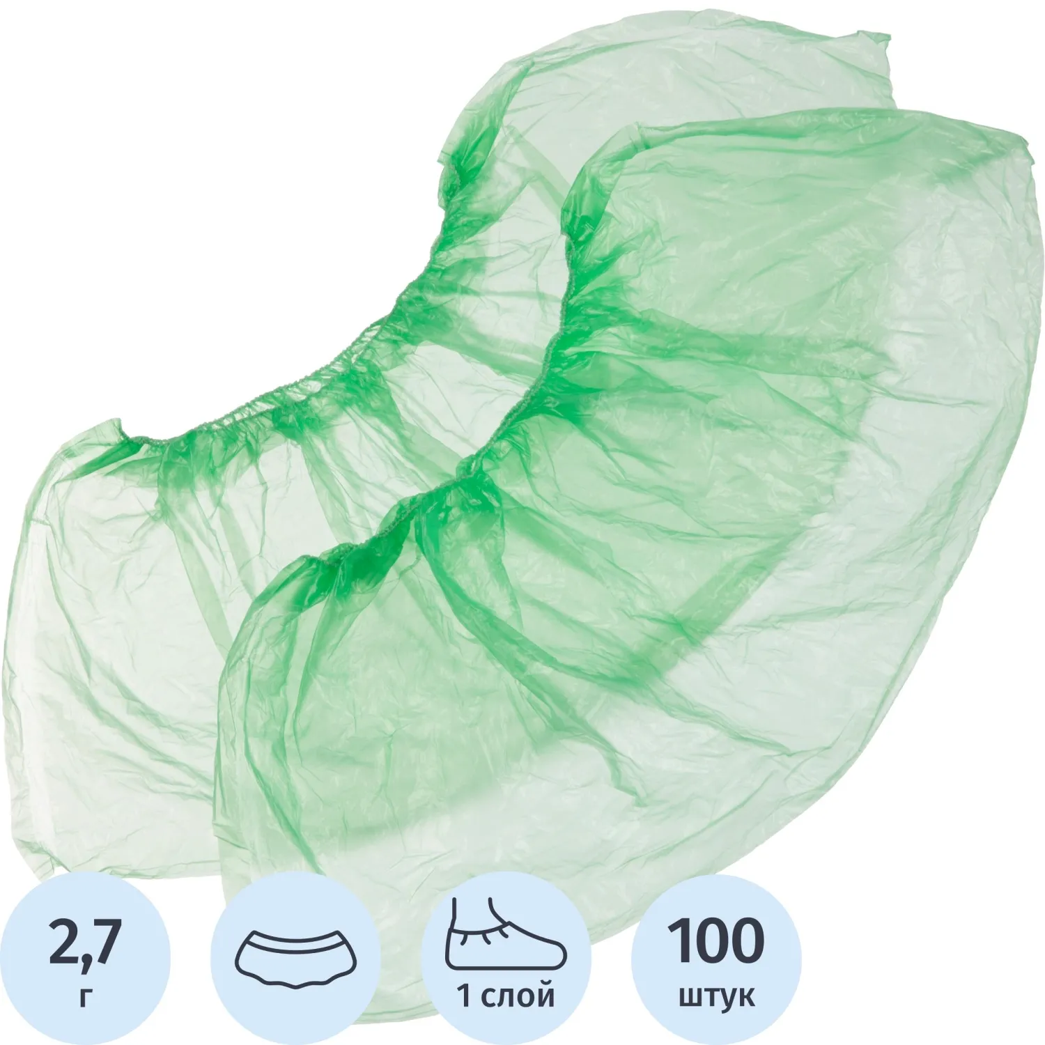 Бахилы 2,7 г, 1рез, зеленый, 10 мкм, Комус, 50пар/уп