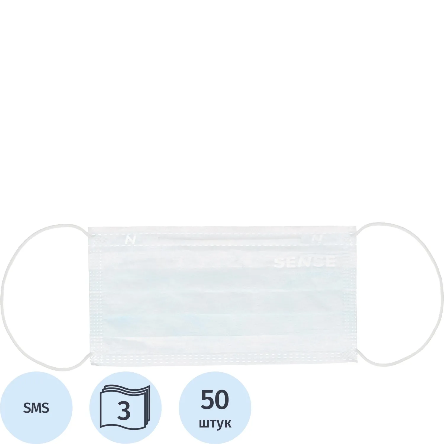 Маска медицинская 3-х сл., Sense, детская, ФЕИ, картон 50шт/уп