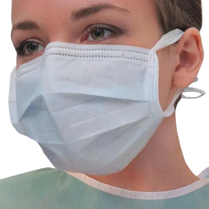 Маска мед трехслойная на завязках голубая, 50шт/уп Гекса