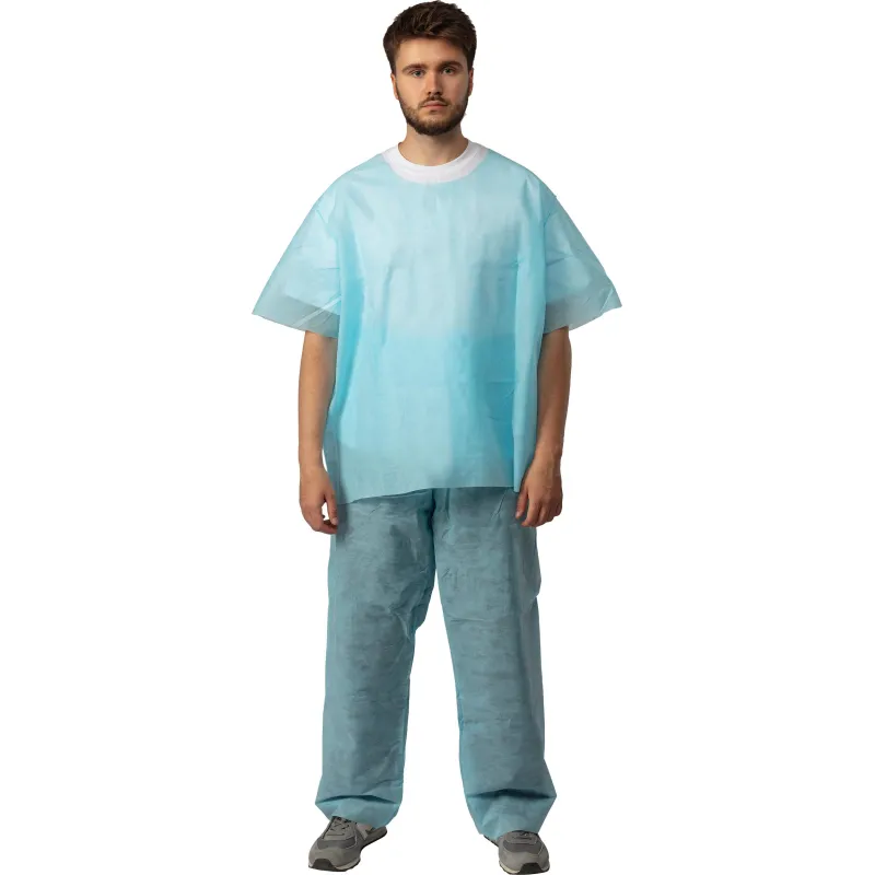 Халат н/с , на завязк, рук.рез, дл.140см, XL, пл 25, голуб, 10 шт/уп