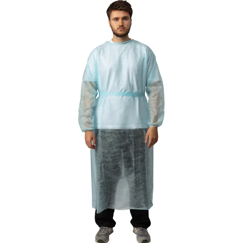 Халат н/с, на завязк, рук.рез, дл.140 см, XXL,пл.25,гол, 10 шт/уп