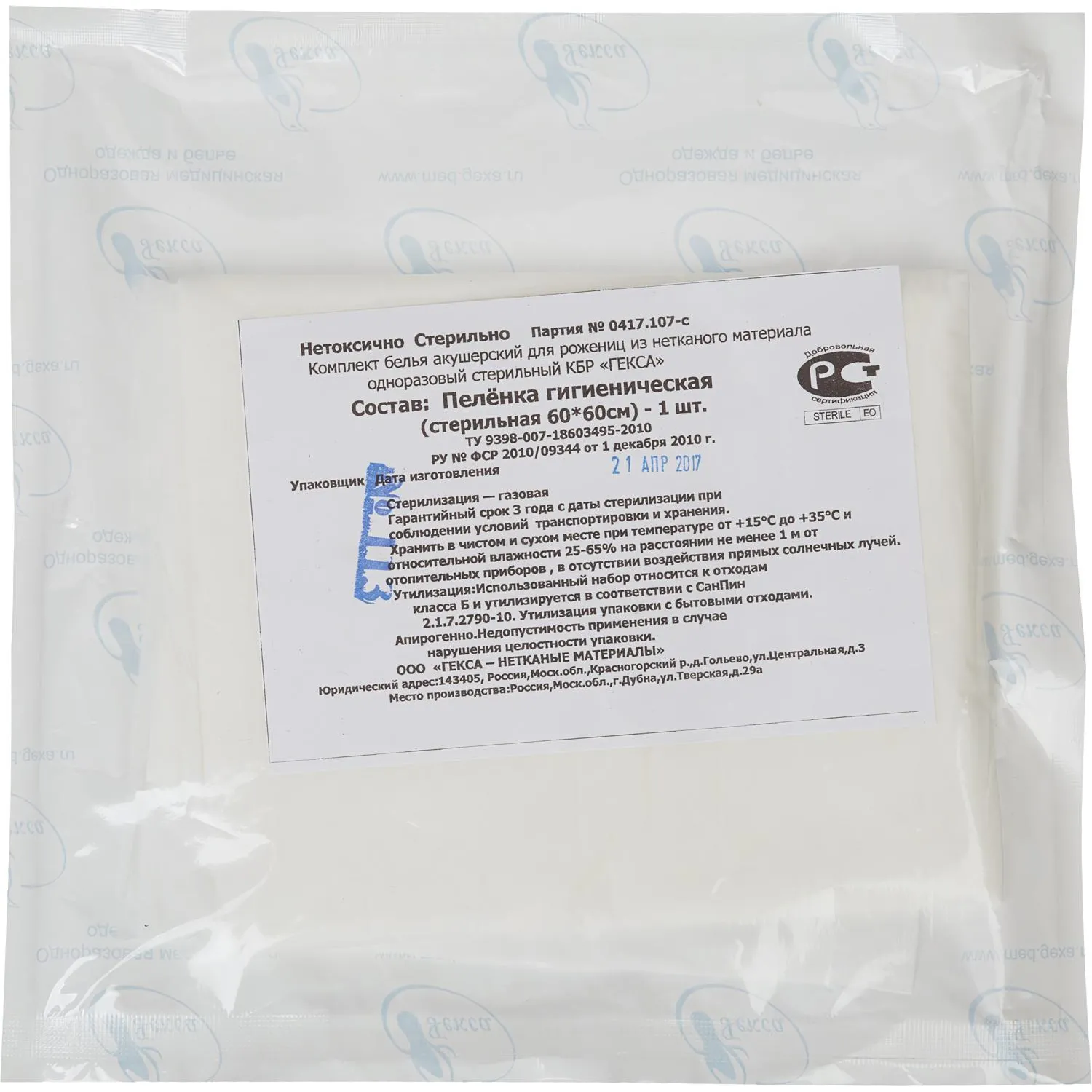 Пеленки впитывающие 60х40см, СТАНДАРТ 30шт/уп