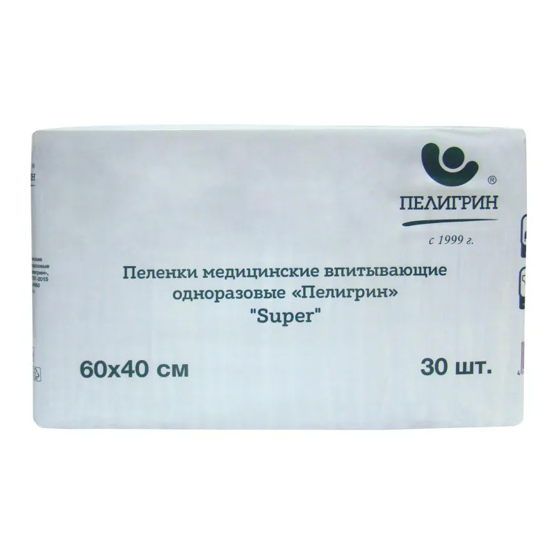 Пеленки впитывающие Пелигрин 60х40см, Super, 30шт/уп (М60х40/30S)