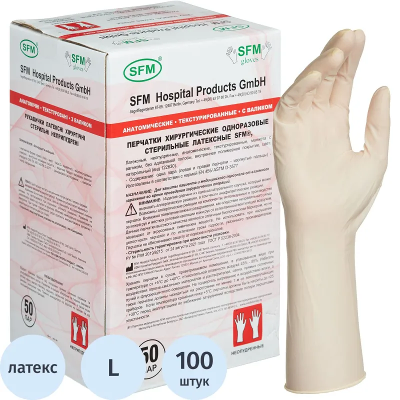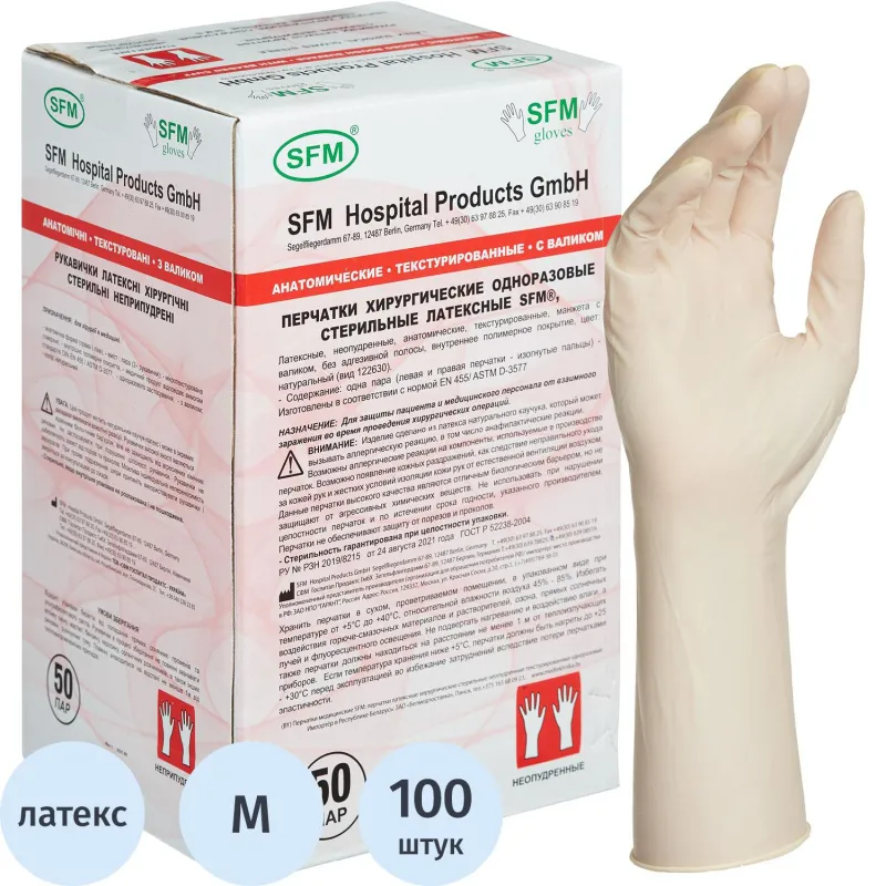 Перчатки мед. хирург. латекс. (стерил.) неопудр. ПАФ SFM (6,0) 50пар/уп