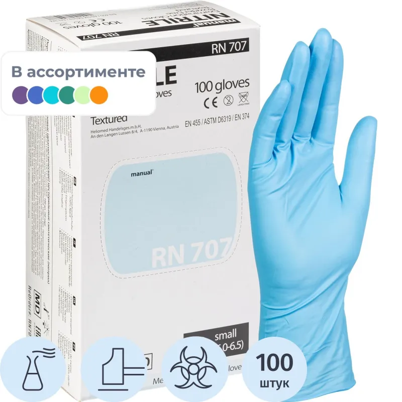 Перчатки мед.смотров. нитрил., нестер, MANUAL RN 707 (S) 50пар
