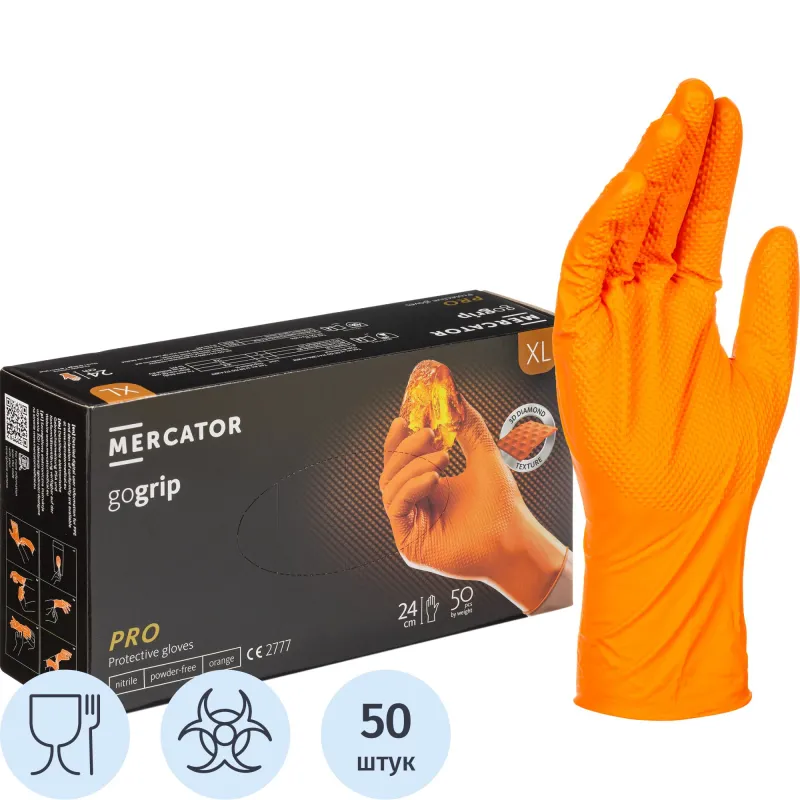Перчатки мед.смотров. латекс.,нестер.,н/о, Dermagrip High Risk(XL) 25пар,ПС
