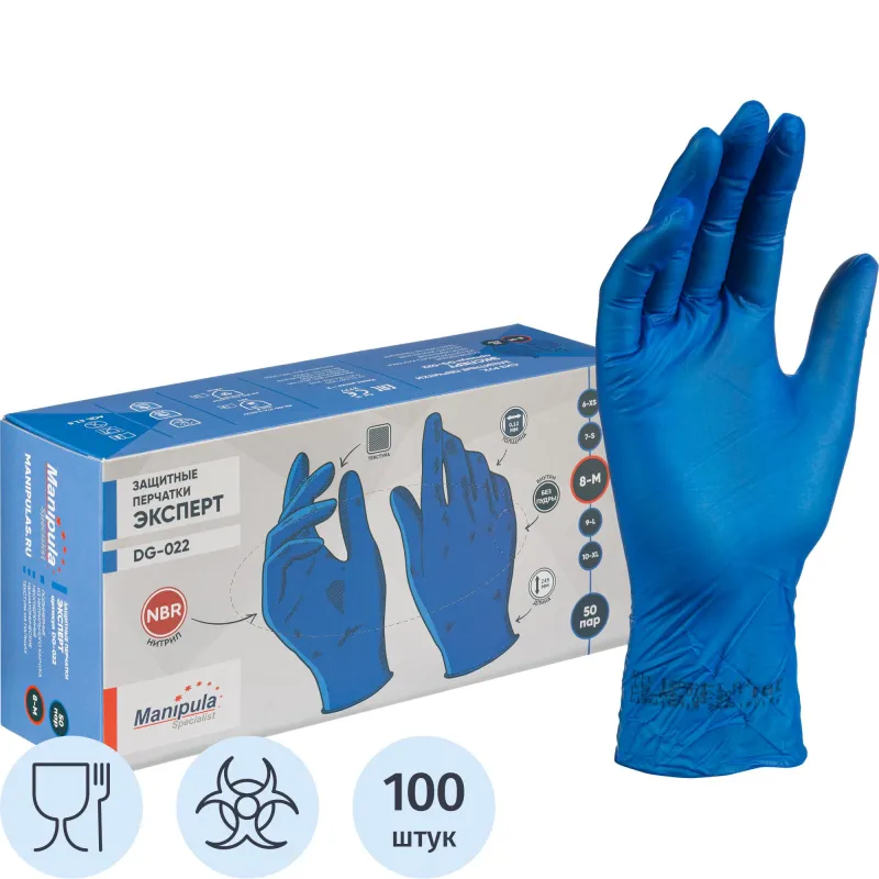 Перчатки одноразовые нитрил Manipula Эксперт (DG-022),р-р М,100шт/уп,ПС