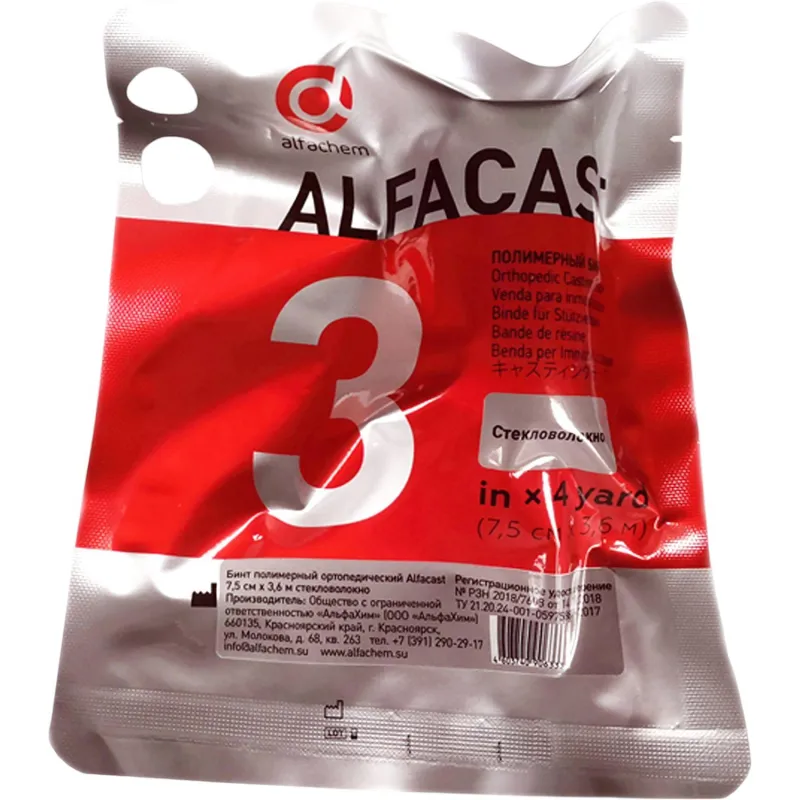 Бинт полимерный, ортопед, стекловолокно, 7,5смх3,6м Alfacast 3, белый
