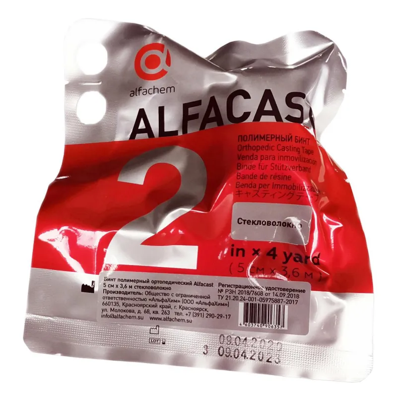 Бинт полимерный, ортопед, стекловолокно, 5смх3,6м Alfacast 2, белый