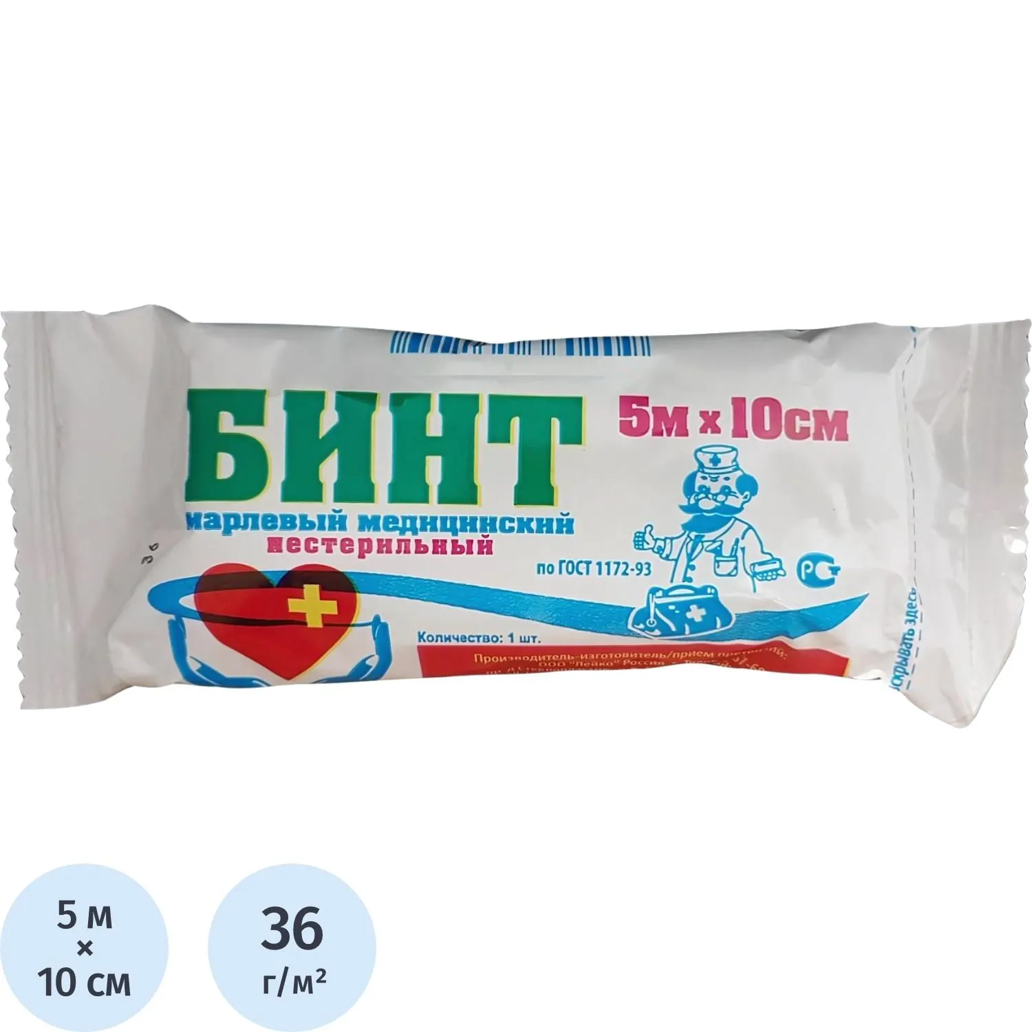 Бинт нестер. 5мх10см, пл.36г, инд.упак, Лейко