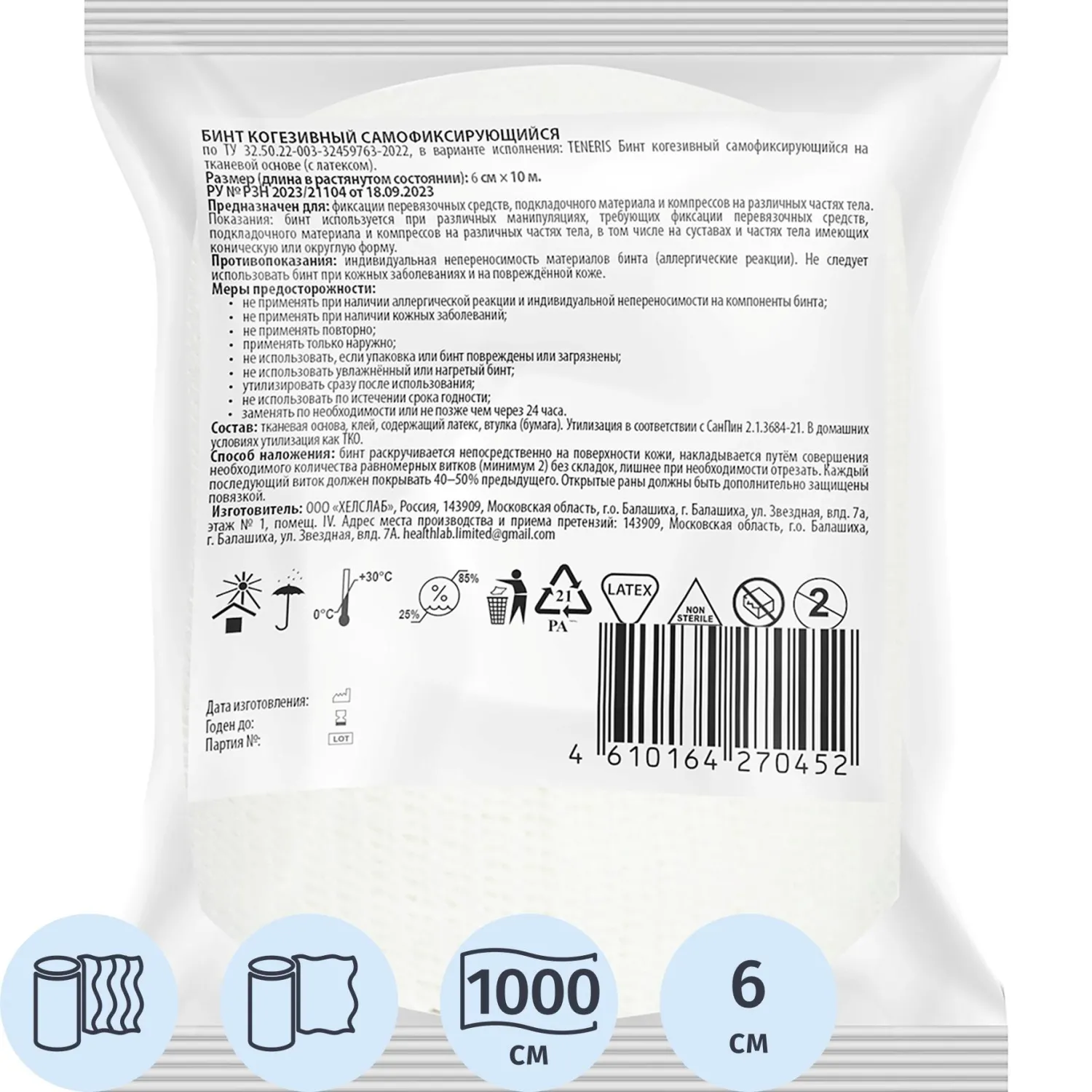 Бинт самофикс эласт 10м х6см Teneris , 64 шт/уп