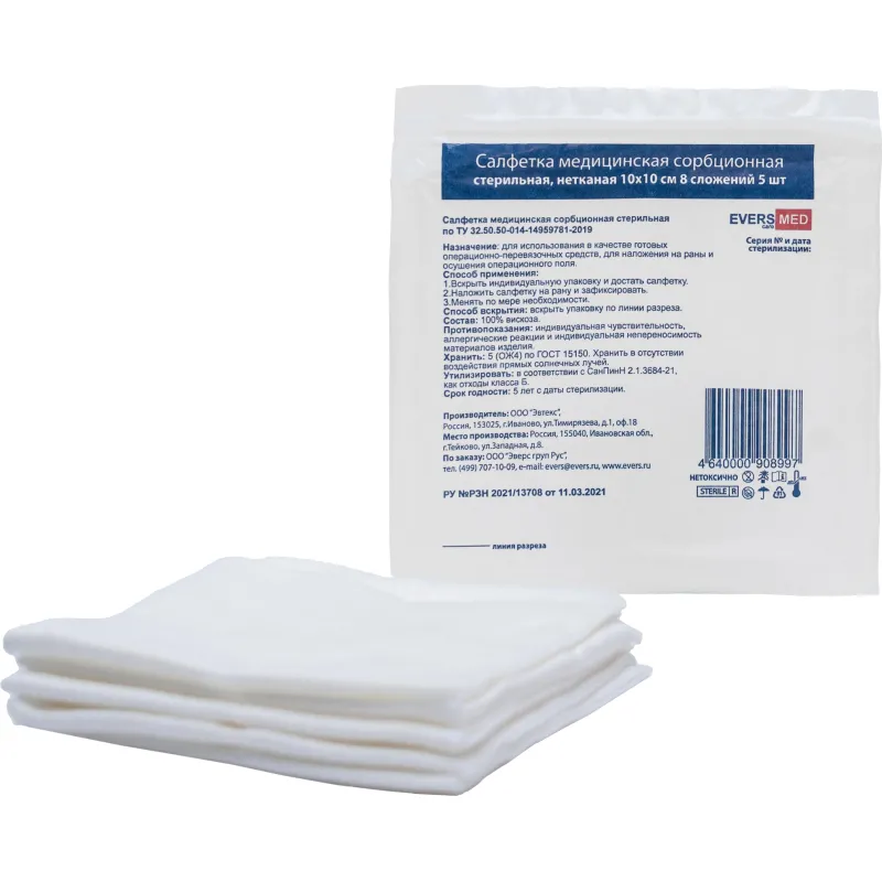 Салфетка сорб. неткан. мед. стер. 10x10,5шт/уп,8 сл. Angel/EVERSMED