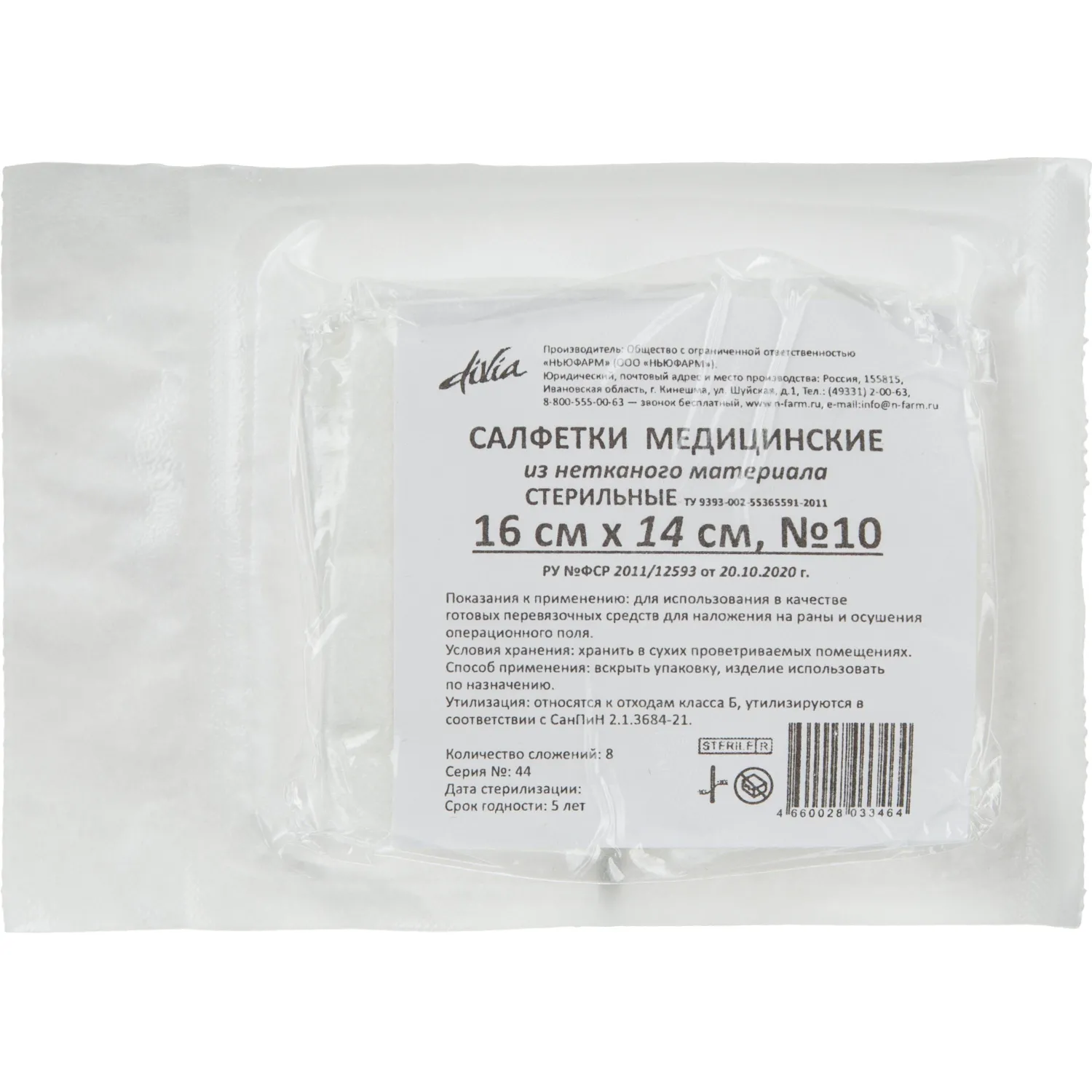 Салфетки нетканые, стер, 16х14см, №10, пл.30, 8 слож., 10шт/уп ШК33464